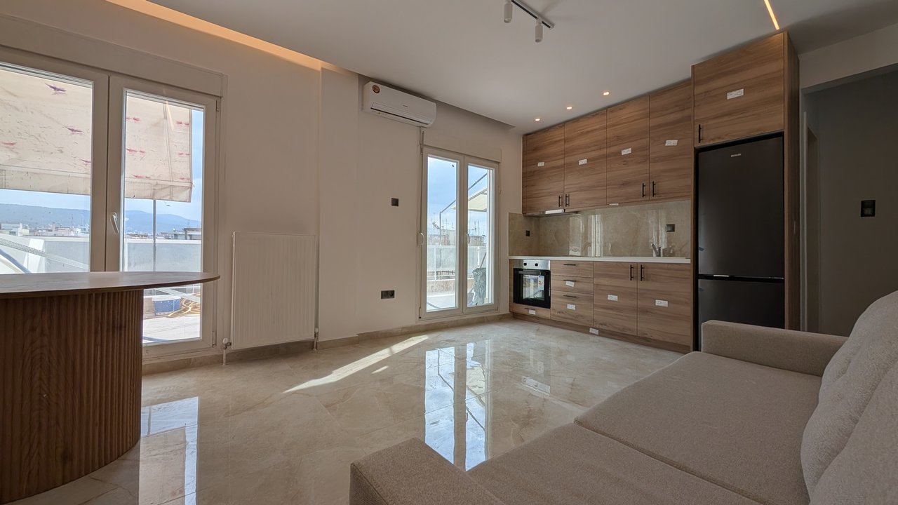 Περιοχή Π. Συνδίκα,πωλείται μεγάλη γκαρσονιέρα,ανακαινισμένη πρόσφατα και επιπλωμένη,57 τμ ,ρετιρε με φαρδύ μπαλκόνι,5ου ορόφου,έχει 1 δωμάτιο σαλοκουζίνα μπάνιο,με ατομικό φυσικό αέριο,θωρακισμένη πόρτα,συνθετικά κουφώματα,ασανσέρ,τεντες,κλιματιστικο,και όλες τις ηλεκτρικές συσκευές,έτοιμο με το κλειδί στο χέρι, καταλληλο για επενδυση ή ιδιοκατοίκηση.